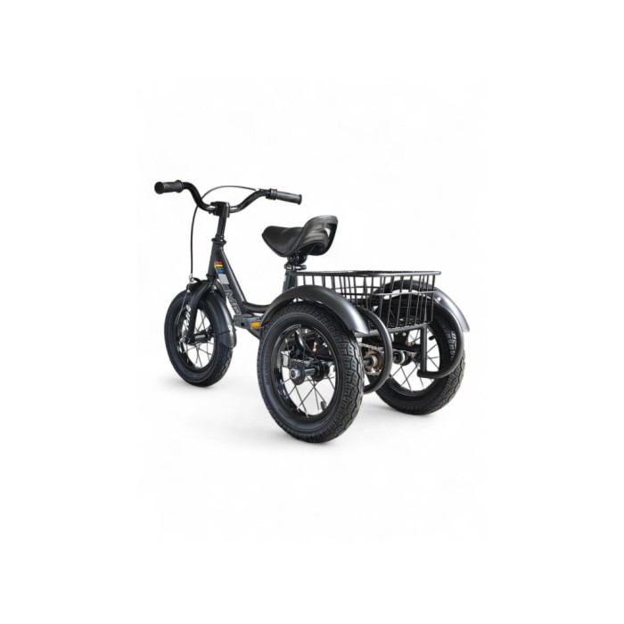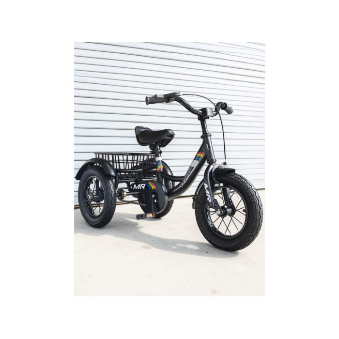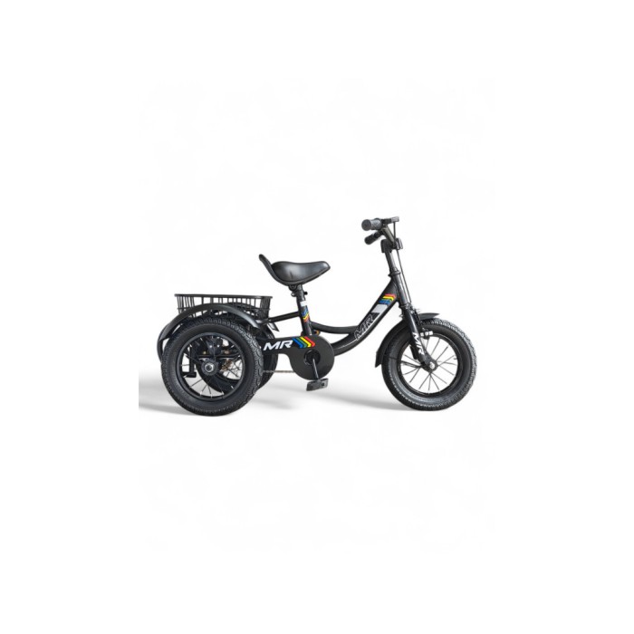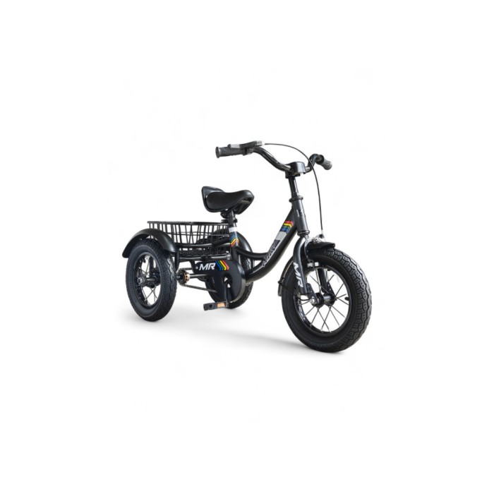 Дитячий триколісний велосипед MR SS01-12, трицикл прогулянковий, 2 роки, сталева рама, надувні колеса, ручне гальмо, кошик, чорний