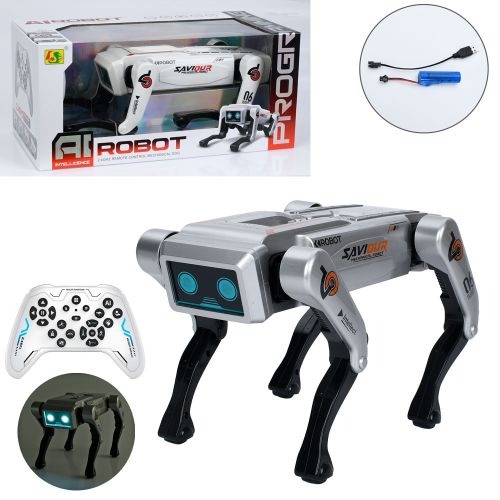 Собака-робот уміє виконувати трюки, реагувати на команди та програмується для створення власних сценаріїв руху. Завдяки вбудованому акумулятору і зарядці через USB, іграшка зручна у використанні та не потребує постійної заміни батарей.