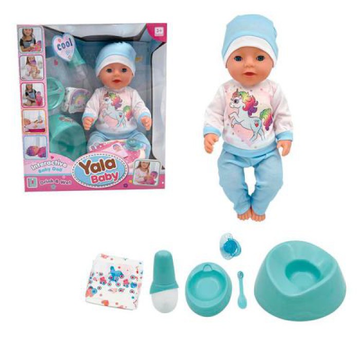 Інтерактивний пупс AKG-0040 42 см “П’є-Пісяє” з повним набором догляду: горщик, пляшечка, підгузок, соска та посуд