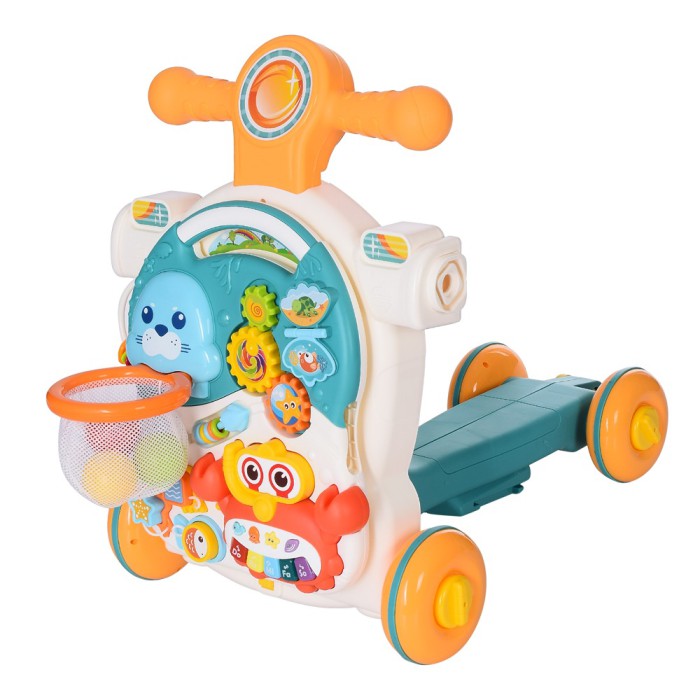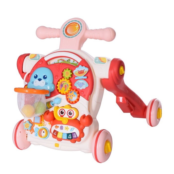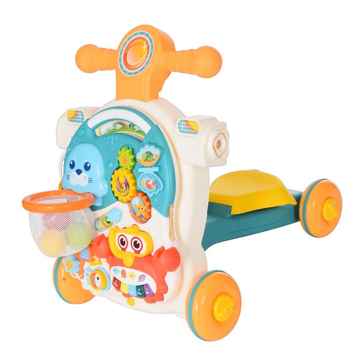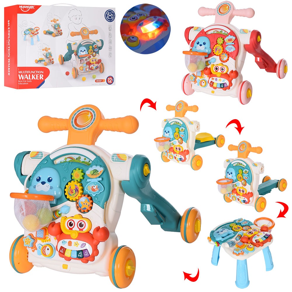 Каталка-ходунки HE0826-27 4в1 — музичний столик, шестерні, баскетбольне кільце, сортер, світло