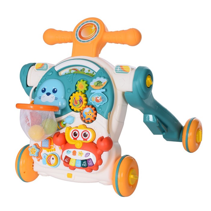 Каталка-ходунки HE0826-27 4в1 — універсальна розвивальна іграшка, що допомагає малюкові впевнено робити перші кроки та цікаво проводити час. Конструкція легко трансформується, поєднуючи каталку, ходунки, ігровий столик і розвивальний центр.