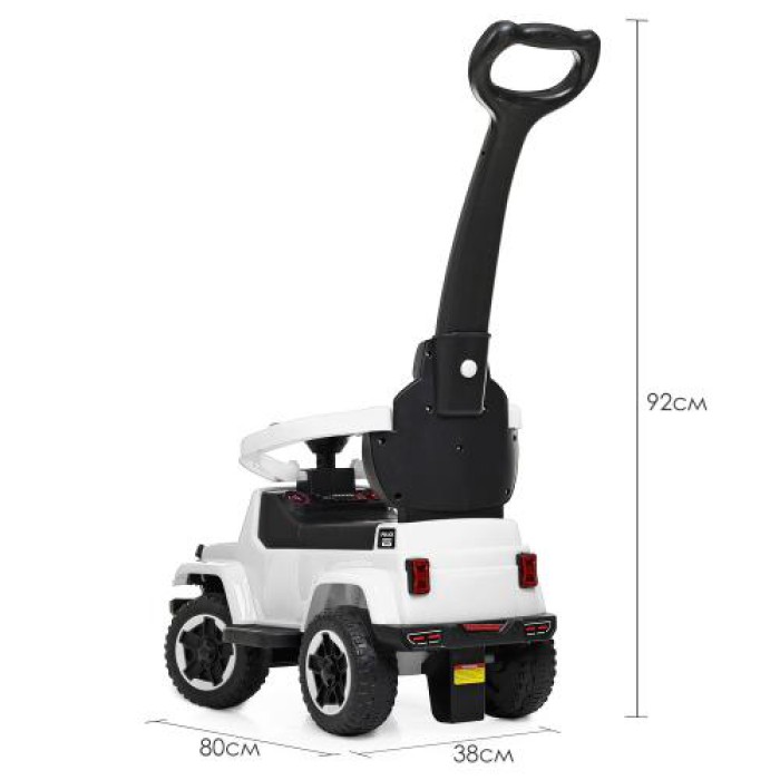 Каталка-толокар M 4288-1 2-в-1 з батьківською ручкою, музикою, світлом і USB — білий