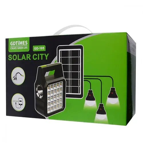 Ліхтар-зарядна станція GD105 — це універсальне рішення для освітлення та підзарядки гаджетів в умовах відсутності електроенергії. Компактний і автономний комплект стане незамінним помічником на дачі, у кемпінгу, в дорозі або під час відключень світла.