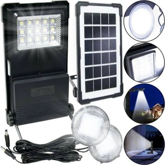 Ліхтар-зарядна станція GDtimes GD-07A із сонячною панеллю та комплектом із 2 LED-ламп