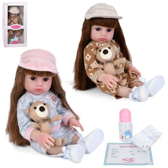 Лялька 45 см з ведмедиком 18 см та аксесуарами: пляшечка, підгузник, 2 види, в коробці