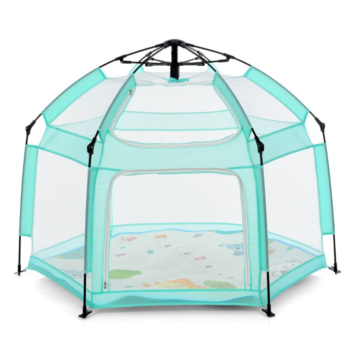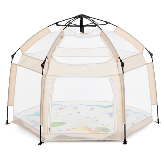 Манеж каркасний для дітей MR 1512 – авто складання, безпечний, з килимком та сіткою (бежевий, сірий, рожевий, синій, зелений)
