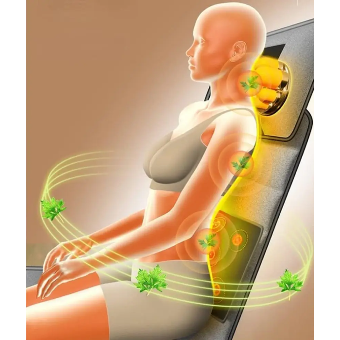 • Вібраційний масаж по всій спині та роликовий масаж шиї – охоплює верхню та нижню частину спини, поперек і плечі.