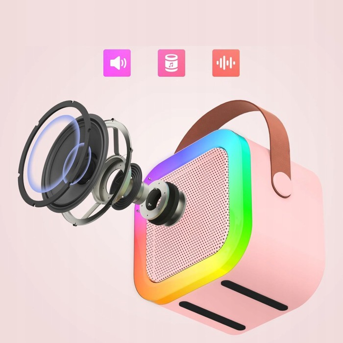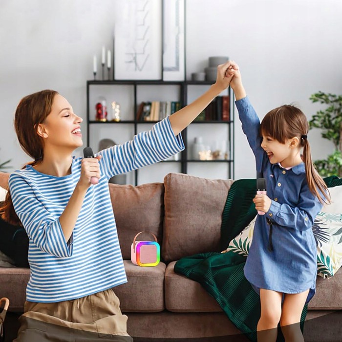Зробіть будь-який день святом із цією компактною, але потужною портативною колонкою, створеною спеціально для домашніх вечірок, музичних ігор та веселих пікніків. Міні-караоке K12 обладнана двома мікрофонами, що дозволяє дітям та дорослим одночасно співати улюблені пісні та розвивати творчі здібності.