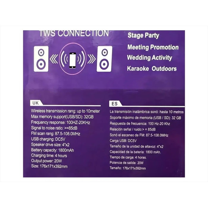 У комплекті передбачено дротовий мікрофон, що робить колонку ідеальною для проведення заходів — від шкільних свят і вечірок до концертів, конференцій, виставок.