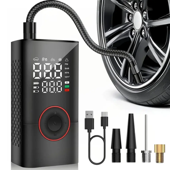 Портативний акумуляторний компресор ATJ-005 50W з LED-дисплеєм – міні-насос для авто та спорту