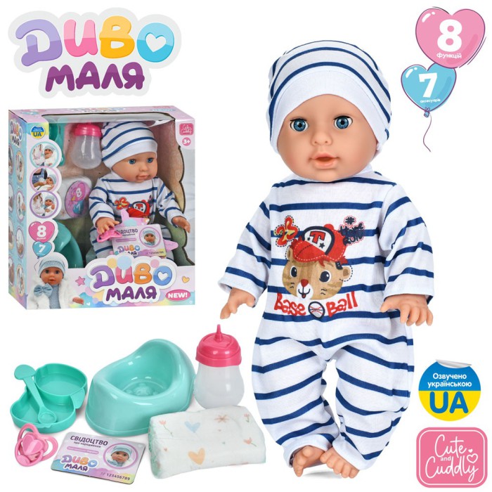 Подаруйте дитині справжнє свято гри з пупсом LIMO TOY! Цей сенсорний інтерактивний пупс висотою 35 см оживляє сюжетно-рольові ігри: він п’є з пляшечки, пісяє, реагує на дотик та соску, а ще співає українську пісеньку. У комплекті – усе необхідне для догляду за улюбленою "дитинкою": горщик, пляшечка, посуд і підгузок. Пупс працює на батарейках, тож гра завжди активна та реалістична.