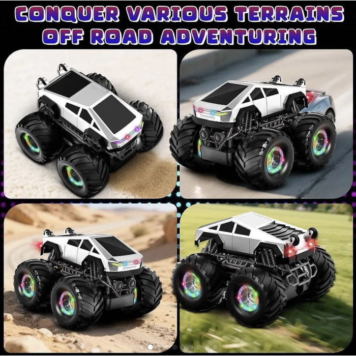 Поринь у світ захопливих перегонів із сучасним позашляховиком у стилі Cybertruck! Радіокерована машинка Cybertruck LH-C096 вражає реалістичним дизайном, потужними функціями та неймовірною маневровістю. Вона легко їздить по різних поверхнях, здіймається на задні колеса та обертається на 360°, забезпечуючи справжнє задоволення від гри.