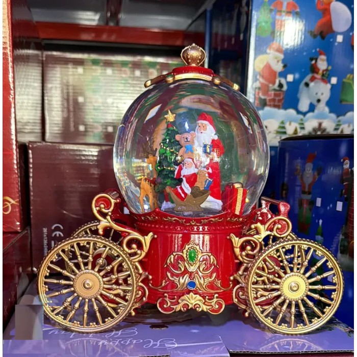 Сніжна куля «Карета» з автопіддувом, LED-підсвіткою та музикою (SH2501) — новорічний декор із ефектом снігопаду