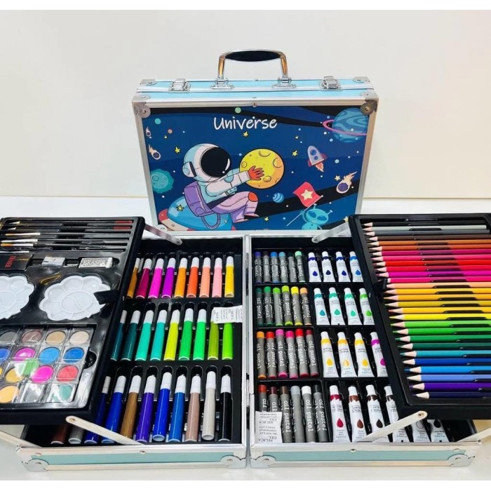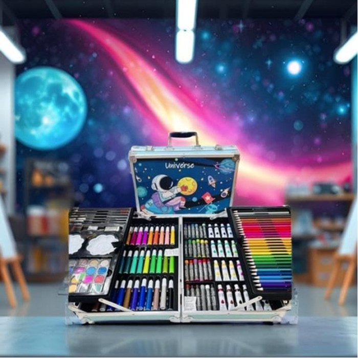 Відкрийте всесвіт творчості з набором "Universe"! Цей універсальний художній комплект об’єднує все необхідне для малювання, розфарбовування та живопису, надаючи безмежні можливості для самовираження. Його компактний металевий кейс із ручкою робить зберігання та перенесення матеріалів зручним і безпечним.
