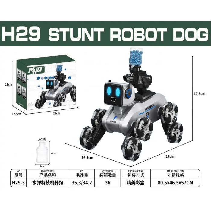 Інтелектуальний робот-собака на колесах H29-3 з пультом, LED-підсвіткою та гарматою для стрільби водяними кулями