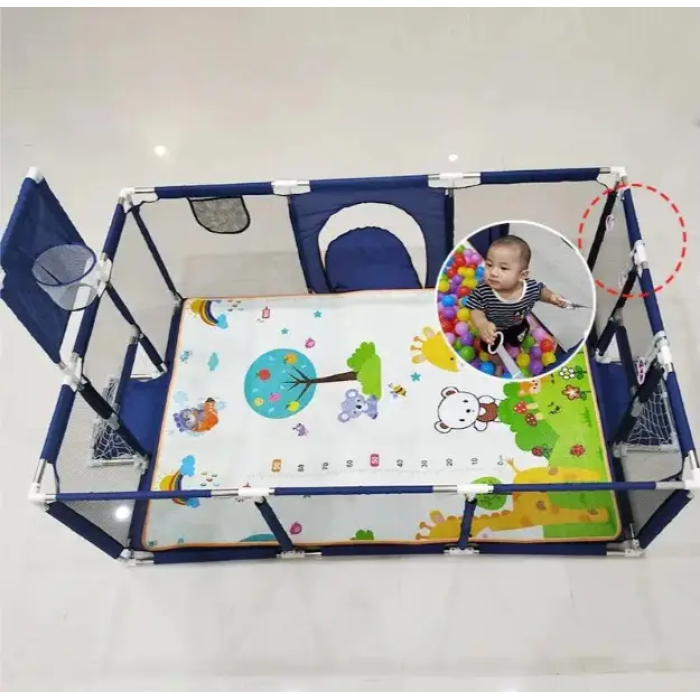 Манеж дитячий ігровий NX-21, великий, синій, для немовлят та малюків, безпечний, складаний, з сіткою та м’яким дном