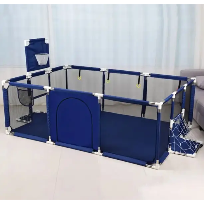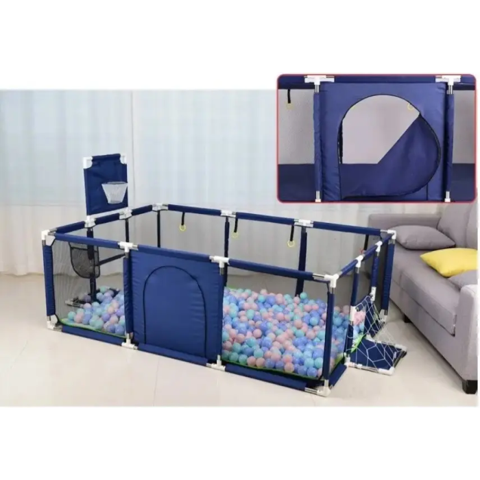 • 3-в-1: манеж + сухий басейн + мініспорткомплекс (кільце + ворота)