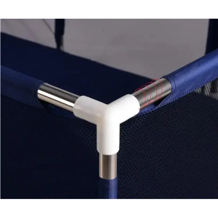 Сітчасті стінки забезпечують відмінний огляд і вентиляцію, а вхід на блискавці робить посадку малюка легкою та зручною. Міцна металева рама та ніжки з антиковзними вставками гарантують стабільність навіть при активних іграх.