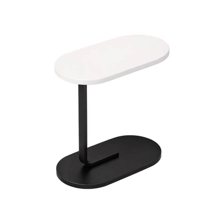 Овальний столик DASH 64203 у глибокому білому кольорі з чорною металевою основою – це ідеальне поєднання мінімалізму, практичності та сучасного дизайну. Завдяки компактним розмірам 45×30×60 см він чудово впишеться навіть у невеликий простір: у вітальні як журнальний столик, у спальні як приліжковий або в кабінеті як зручна кавова зона. Овальна стільниця виглядає елегантно та безпечно, а міцна металева конструкція гарантує стійкість і довговічність у щоденному використанні.