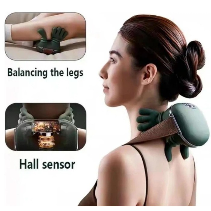 Масажер виготовлений із гіпоалергенної м’якої тканини та міцного ABS-пластику, що робить його безпечним і довговічним у використанні. Пристрій універсальний — підходить для шиї, плечей, спини, попереку, рук, ніг та литок.