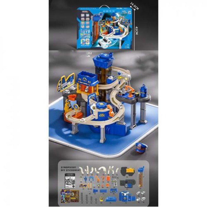 Конструкція треку має ліфт, рухливі деталі, а також музичні та світлові ефекти, що додають реалістичності. У комплект входить 8 поліцейських машинок завдовжки 3 см, які можна піднімати ліфтом або запускати по трасі.