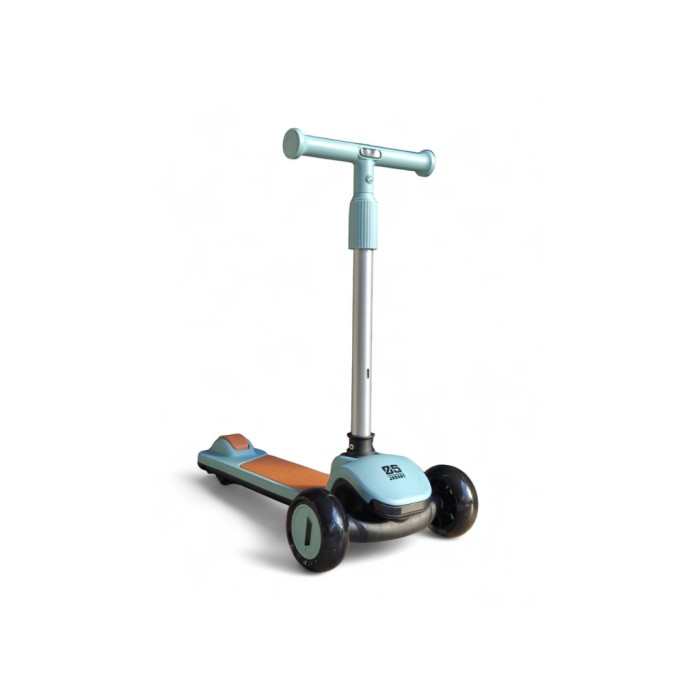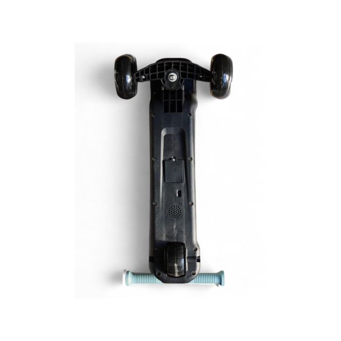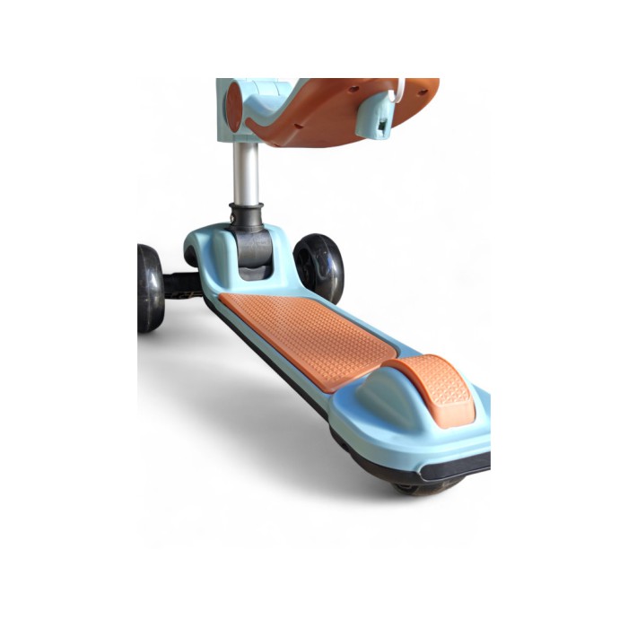 Самокат має стійку триколісну систему, керування здійснюється шляхом нахилу керма, що допомагає розвивати координацію та баланс. Світні PU-колеса забезпечують плавний та тихий хід, а ножне гальмо на задньому колесі відповідає за безпеку під час зупинки.