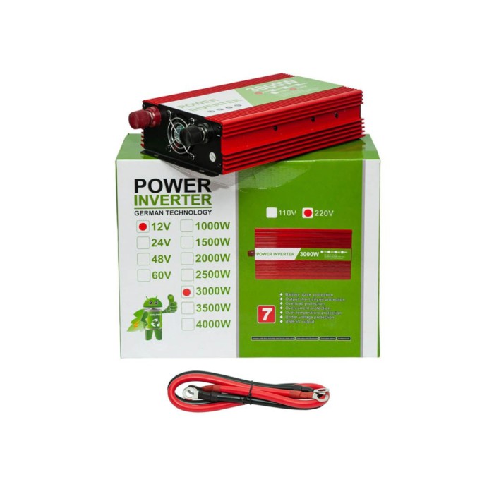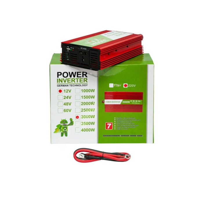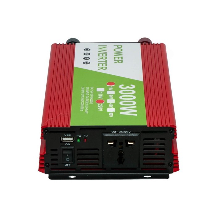 Інвертор Power Inverter 3000W — це надійний та потужний перетворювач напруги, який дозволяє підключати побутову та електронну техніку з напругою 220 В до джерел постійного струму 12 В. Ідеально підходить для використання в автомобілі, кемпері, на дачі, у подорожах або під час аварійних відключень електроенергії.