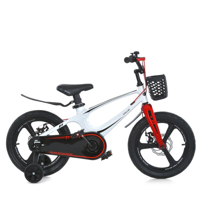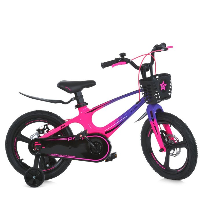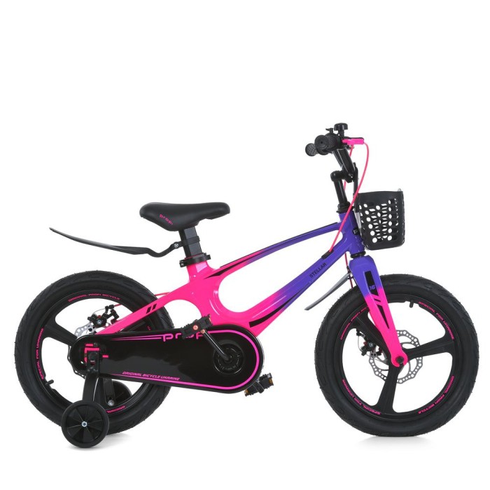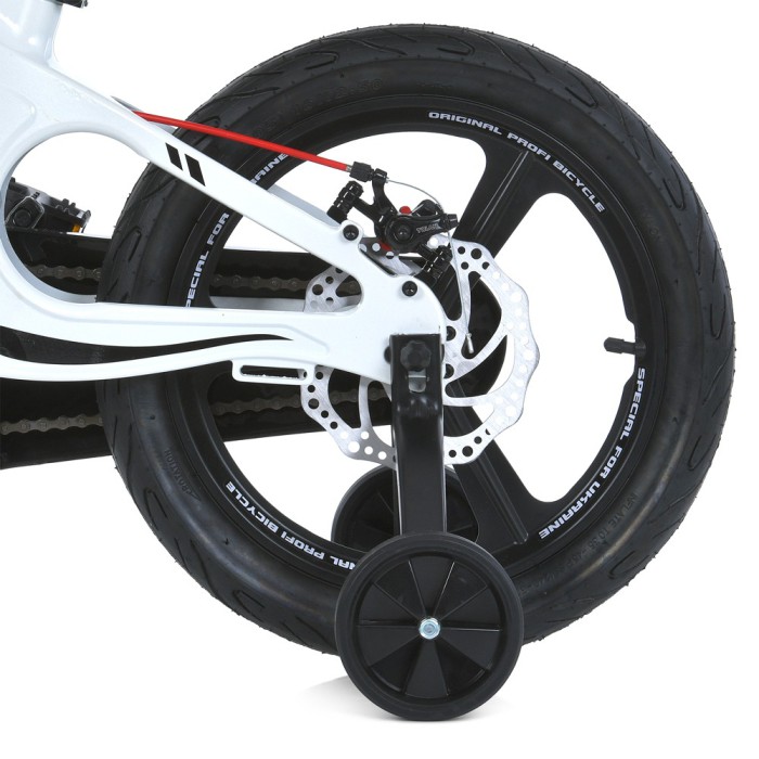 Велосипед створений для дітей, які вже впевнено тримають рівновагу на двоколісному транспорті та прагнуть нових відкриттів на свіжому повітрі. Легка магнієва рама поєднує міцність і мінімальну вагу, тож малюк легко керує велосипедом, а дискові гальма на обох колесах забезпечують надійне гальмування в будь-яких умовах. Додаткові колеса допомагають новачкам впевнено стартувати та відточувати навички катання.