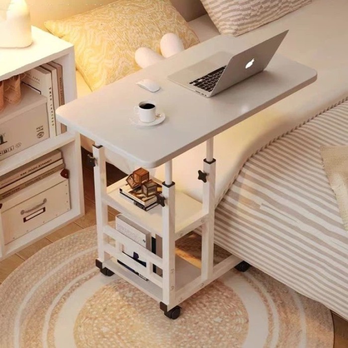 Журнальний та приставний стіл T-60 з регульованою висотою, для ноутбука, з 2 полицями на коліщатках – білий